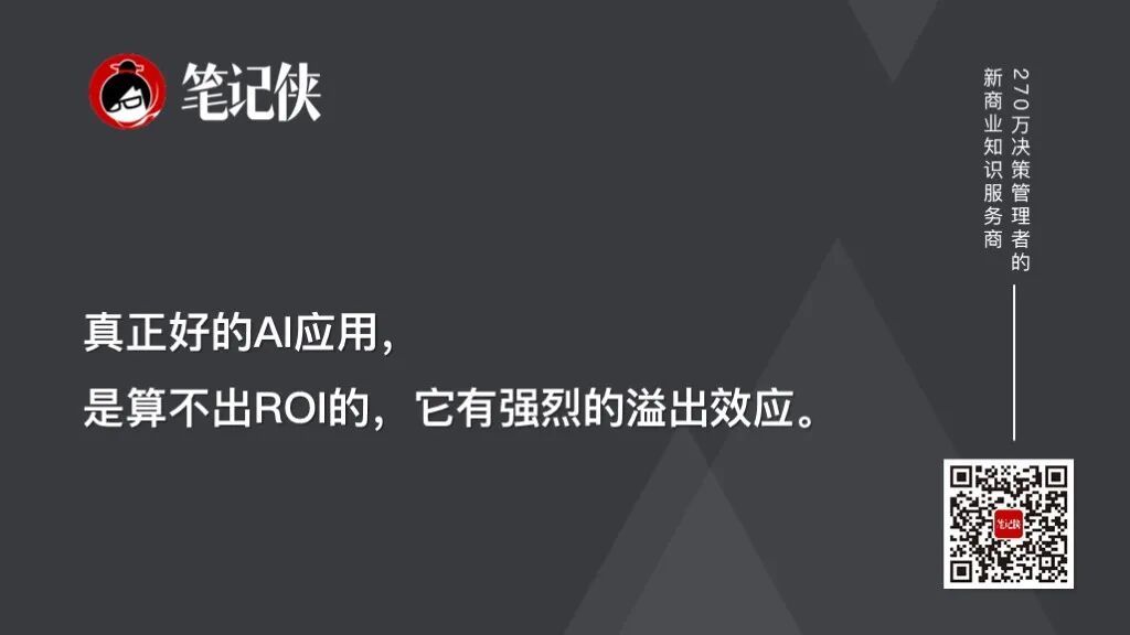 但实际上, 真正好的AI应用,是算不出ROI的,它有强烈的溢出效应。